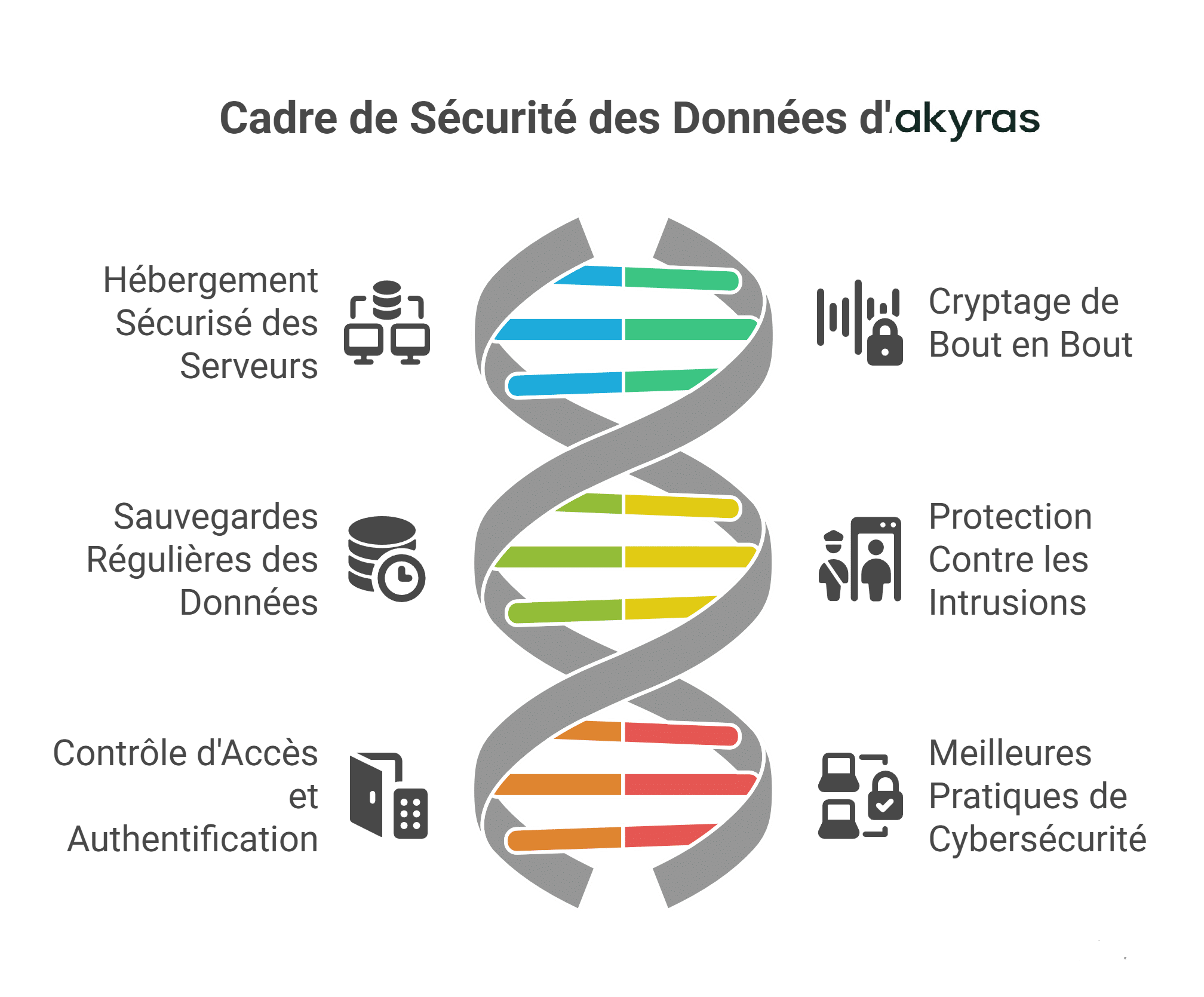 Avec akyras, vos factures, devis et informations financières sont en sécurité maximale. Nos serveurs ultra-sécurisés, hébergés dans des data centers certifiés, utilisent un cryptage avancé et des sauvegardes automatiques pour protéger vos données à tout instant. Chaque accès est contrôlé et authentifié, vous garantissant confidentialité, fiabilité et tranquillité d’esprit