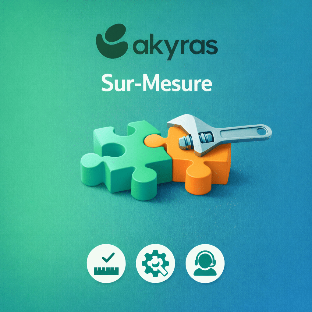 Offre AvancéePack IntégrationSur devis VOTRE OFFREDevis & factures illimitésGestion de produitsFacturation électroniqueSignature électroniqueModèles de facturesPièces jointes facturesEnvoi par mailLogo personnalisé sur facturesTableaux de bordPost-itConnexion bancaireComptabilité complète, déclaration TVAGestion stock & fournisseursCommandes & expéditionsDouble authentification (TOTP – FIDO2)Personnalisation AkyrasService client (gestion ticket)Assistant IA